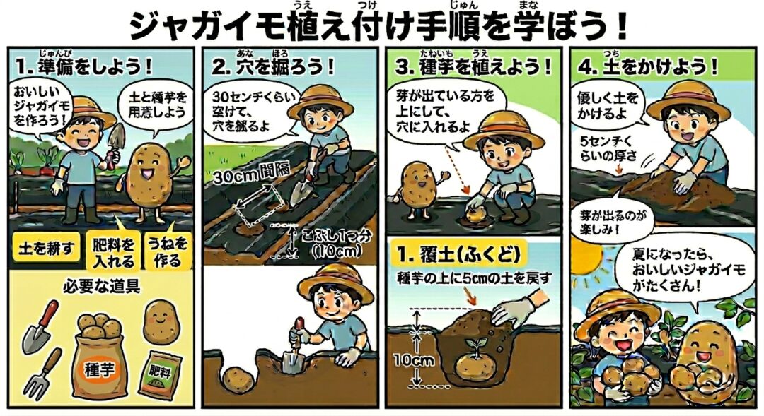 ジャガイモの種芋の植え付けの流れ